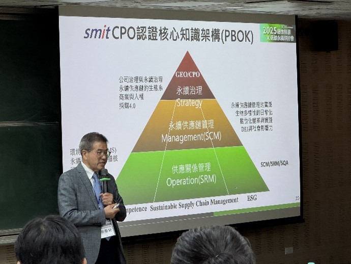 中華採購與供應管理協會理事長廖國明理事長認為,企業應將傳統的採購考量(品質、成本、交期、服務)與財務、碳排、永續三套帳整合,並將永續視為提升商業效益的戰略,而非僅是成本。他以國際時尚品牌為例,說明透過綠色採購,將永續視為戰略而非成本,企業終能實現商業與永續的雙贏。