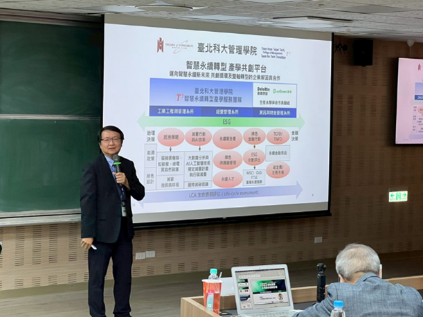 北科大管理學院范書愷院長表示,管院產學服務團隊已成功輔導多家企業推動智慧製造、精實管理及碳管理系統,並結合EMBA永續課程及連續三年舉辦永續論壇,帶動更多經理人重視智慧永續議題,未來將持續深耕進階永續議題,如智慧合約,區塊鏈履歷追蹤等,致力成為企業永續轉型的堅實夥伴,攜手打造更具韌性的低碳供應鏈。北科大管理學院院長范書愷再次強調,管理學院將持續扮演企業永續轉型路徑上的堅實夥伴,未來將持續深化與產業的合作,攜手各界打造更具韌性與競爭力的低碳供應鏈。