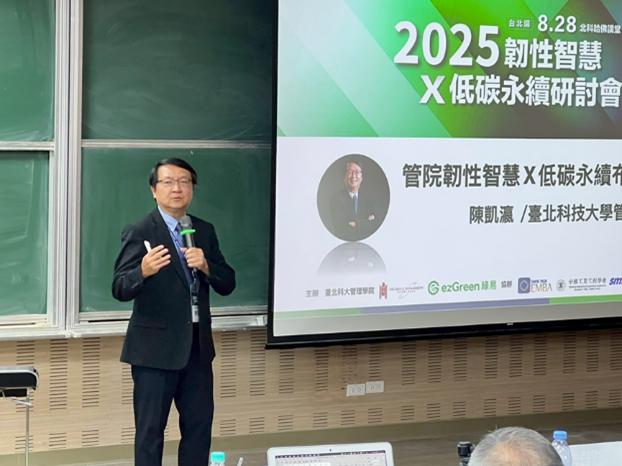 臺北科技大學管理學院與綠易(股)公司於8月28日共同舉辦「2025 韌性智慧 × 低碳永續」研討會。以「雙軸轉型」為核心,深度探討企業如何運用AI與數位科技,在追求效率與創新的同時,應對綠色轉型的嚴峻挑戰,並提升供應鏈的整體韌性。